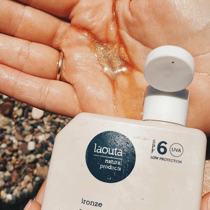 Laouta Bronze Beach Body Oil Cacao SPF6 is 93% natuurlijk, handgemaakt, vegan, dierproefvrij en verpakt in 100% recyclebare, biologisch afbreekbare verpakkingen: ecoflesje op basis van suikerriet met certificaat "I am Green".